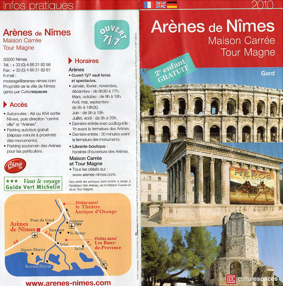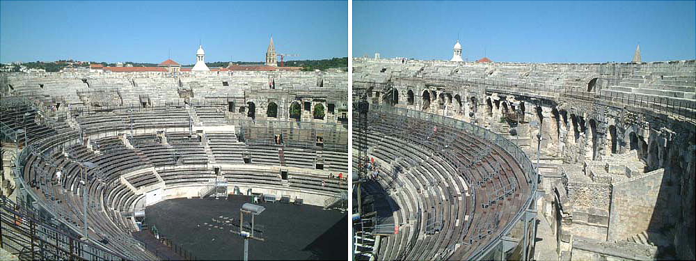 万1千人を収容した。フランス全土に20あまりの闘技場が発見されているが、ニームのものが一番保存状態がよい。ローマ帝