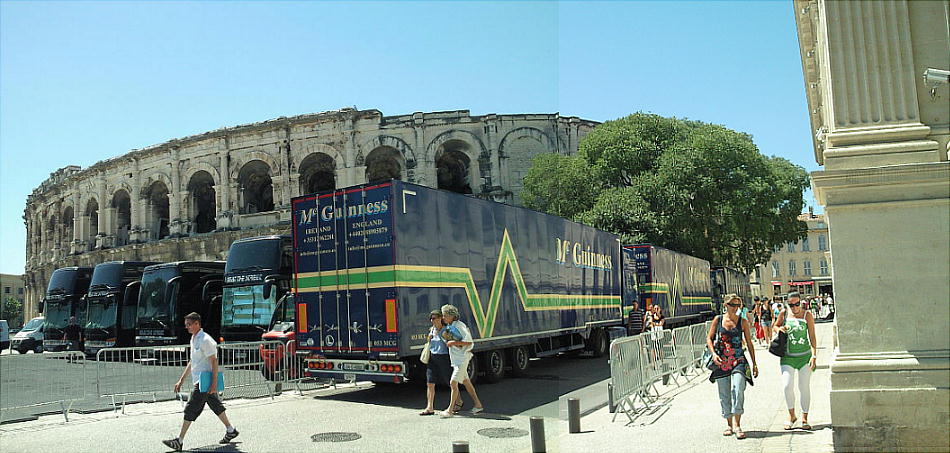 コンサート、オペラなどに使われている。またフランスでは珍しく闘牛も行われている。イタリアのコロッセオに比べると保存