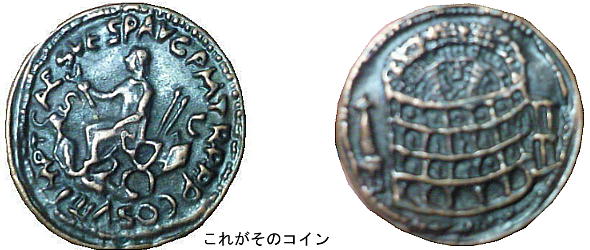 ローマのコロッセオで買ってきたロ−マ時代のコインと同じ。勿論買ってきたのはレプリカだが。