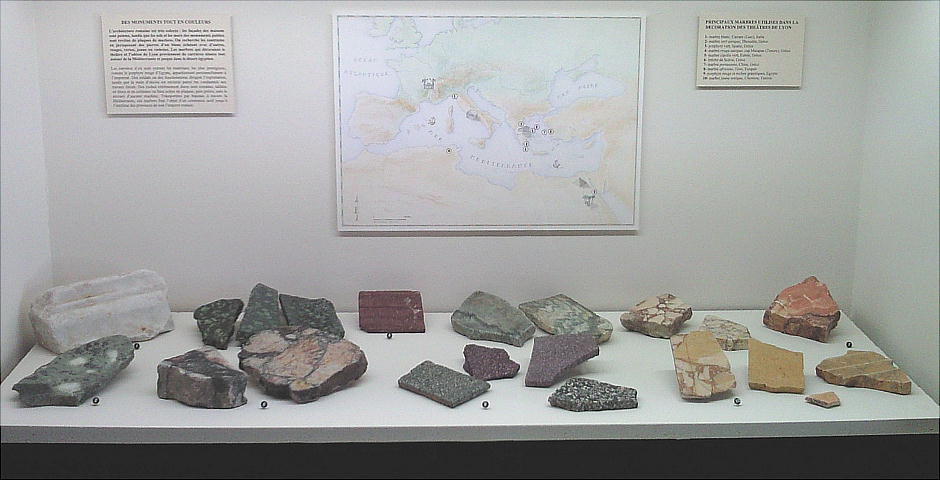 石材は地中海周辺から来た。下の解説では、ギリシアが一番多く、後イタリー、トルコ、エジプト、チュニジアとなっている。