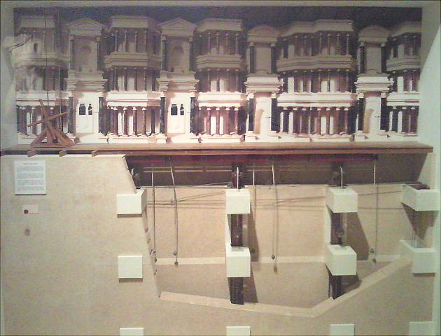これは、現在こうやって劇場の下を支えているという、修復工事の模型。