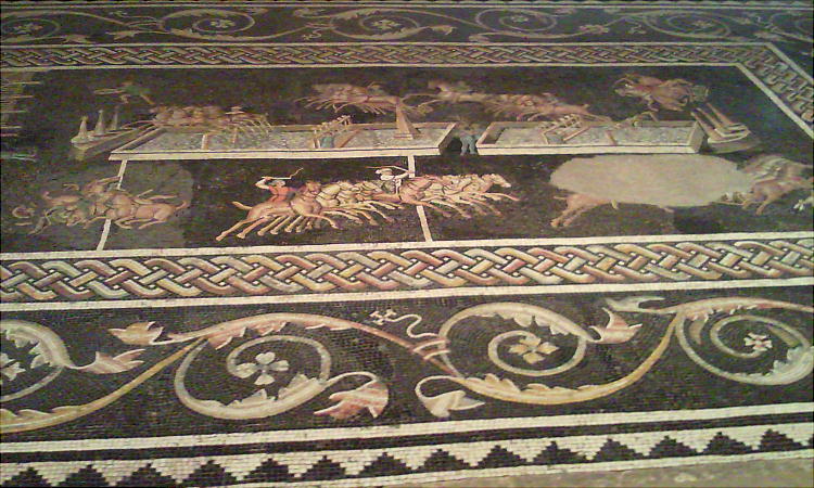 なんとこれはサーカスの様子を現したモザイクである。紀元前後にもうサーカスがあったんだ。