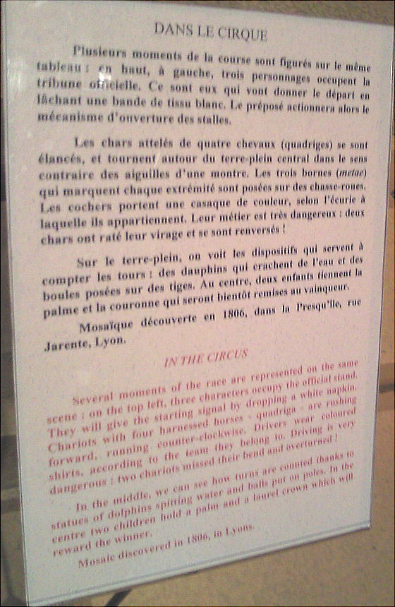 モザイク、石棺や日用品、宝飾品など、リヨンで発見された遺物の展示を通して窺い知る事ができる。