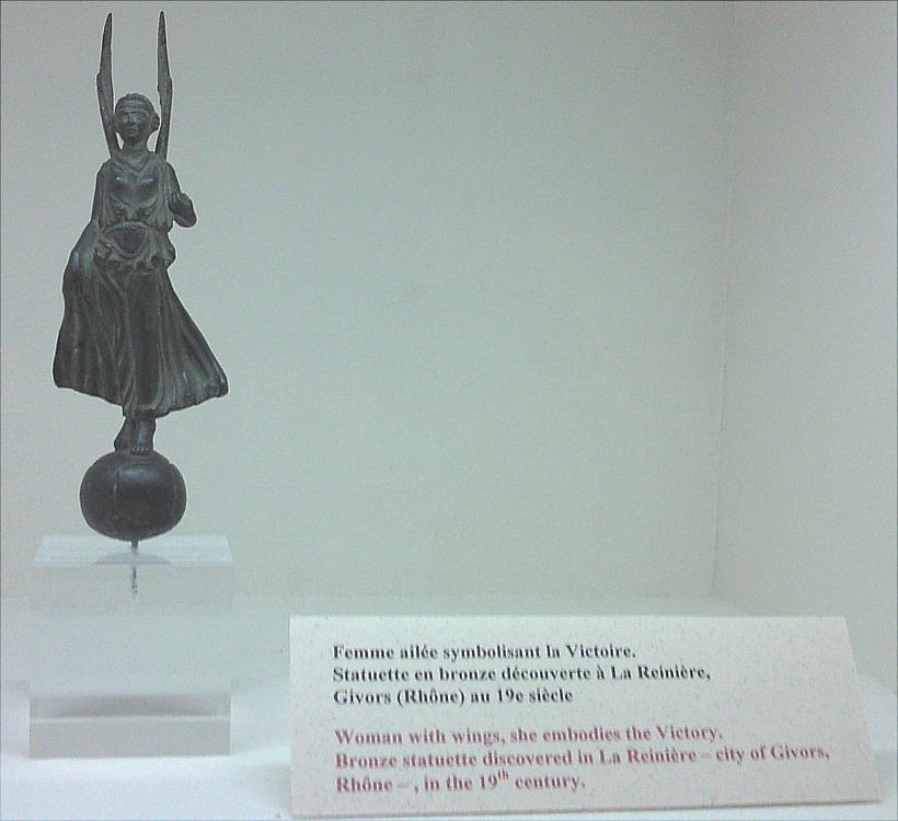 翼を持った女。勝利の女神。19世紀に La Reniere(city Givors,Rohne)で発見されたと、この位なら英語も読めます。