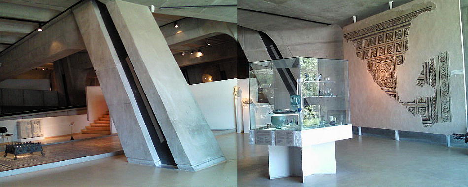 外観は、遺跡の風景をそこなわないように配慮され、最上階と外光を取入れる窓以外は斜面に溶け込んだ5階建ての大胆な設計。