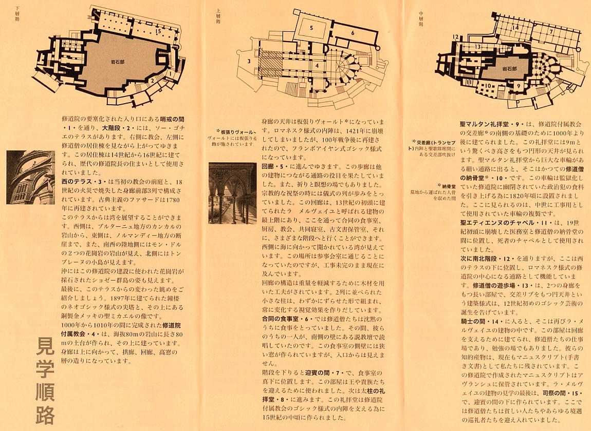 966年にはノルマンディー公リシャール1世がベネディクト会の修道院を島に建て、これが増改築を重ねて13世紀