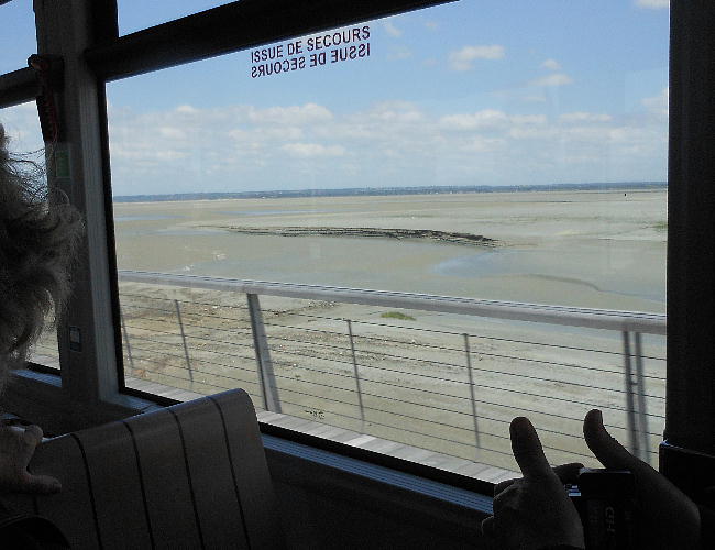 到着。駐車場に車を入れ、近くのガイダンスまで歩く。ここでバスに乗り換え、モンサンミッシェル島へ向かう。