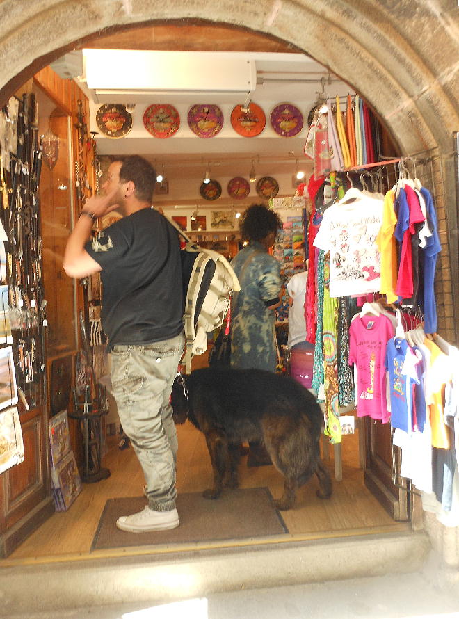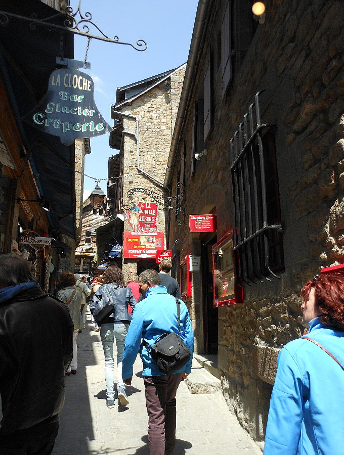 修道院下の狭い路地は店が立ち並び観光客で溢れている。