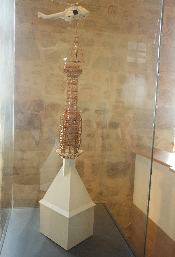 ヘリコプターで塔の先端部分を取り付けた時の模型図。