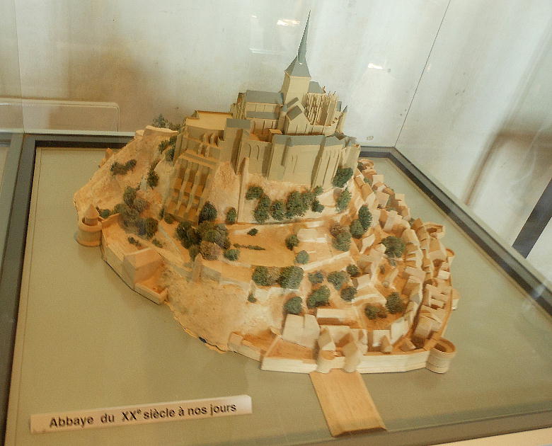 モンサンミッシェル修道院がどのようにして出来上がったかの模型図。