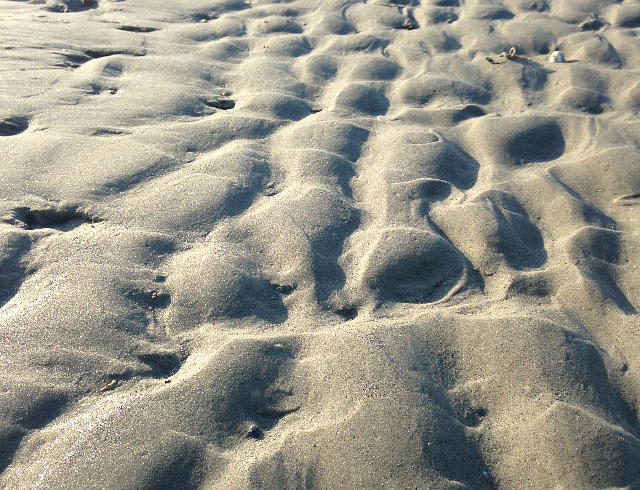 ボロ現象)。島の入口には潮の干満時刻を示した表示があり、満潮時には浜に降りないようにと記されている。
