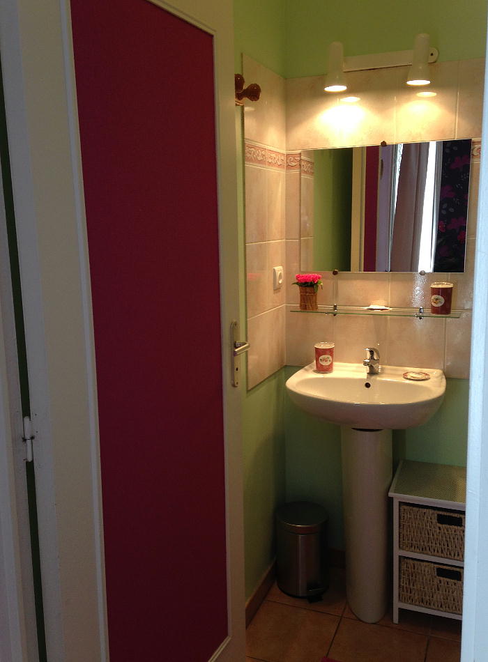 裏口を開けると、部屋は広い庭に面していて、上はその庭から部屋を写したもの。