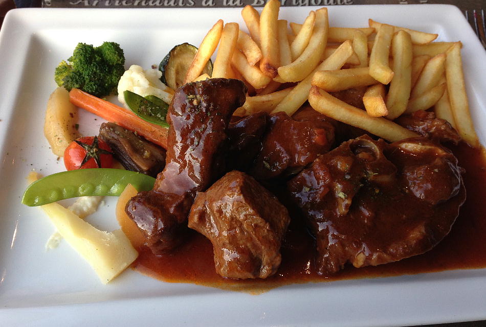 入り口にある「プラールおばさん」(la Mere Poulard)のオムレツ(スフレリーヌ)が名物料理となっている。