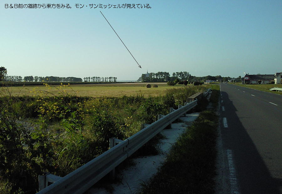 今夜の宿は、モンサンミッシェルの近くのB&Bである。広い庭に面した部屋だった。このB&Bからも、遠くに