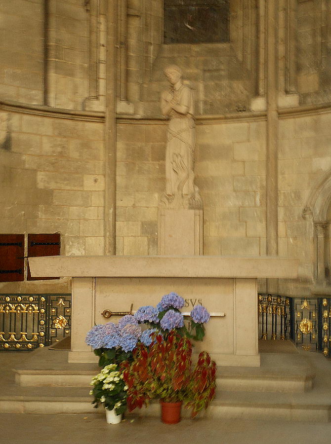 内部の礼拝堂にはジャンヌ・ダルクの像が安置された一画があった。ここはジャンヌ・ダルク終焉の地でもあるの