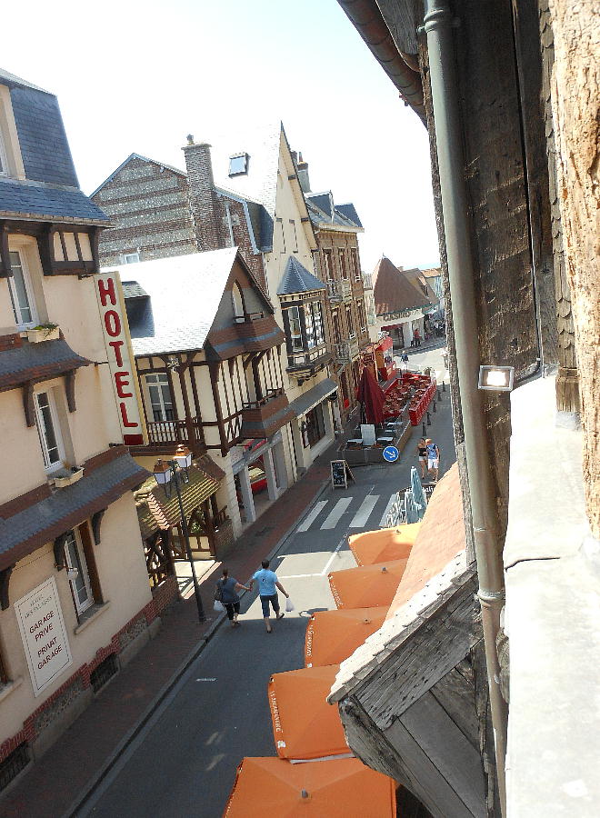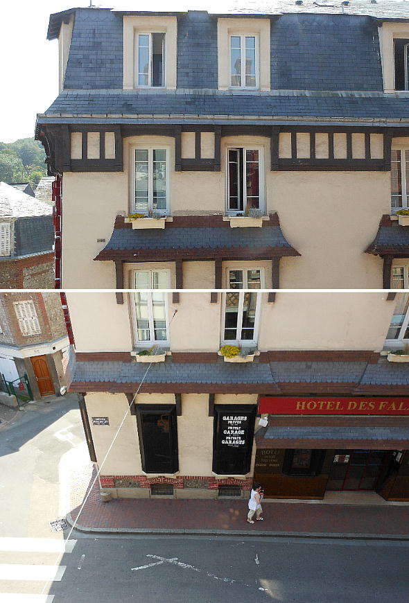 我々の部屋の向かいのホテル、と、エトルタ海岸。