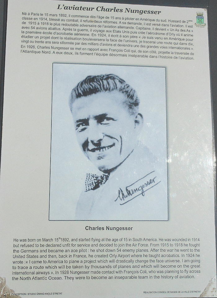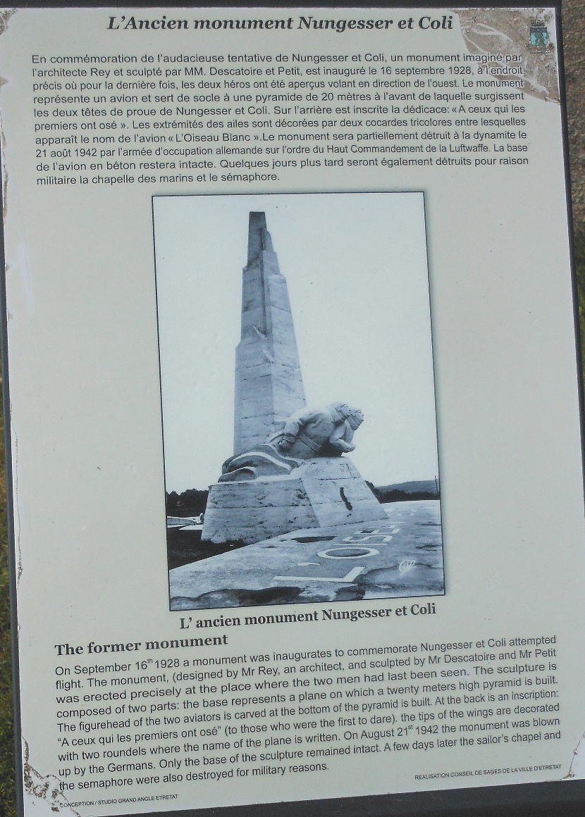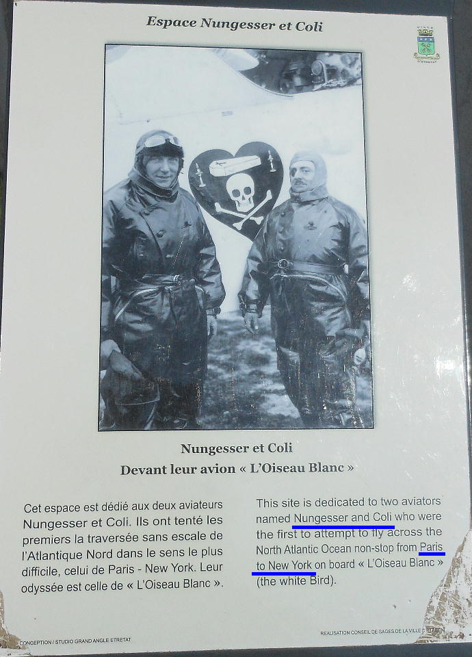 モニュメントへ近づいて見ると、パリ−NYK間無着陸飛行に挑み、大西洋上で消息を絶った2人のパイロットの