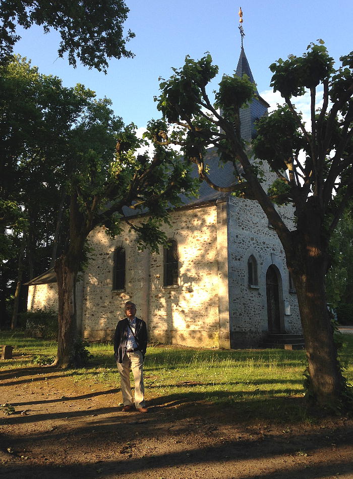 開けていて、その先に教会があるから行って見たらと勧める。小さな村の教会で、鎮守の森のような林に包まれた