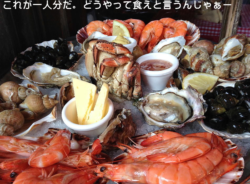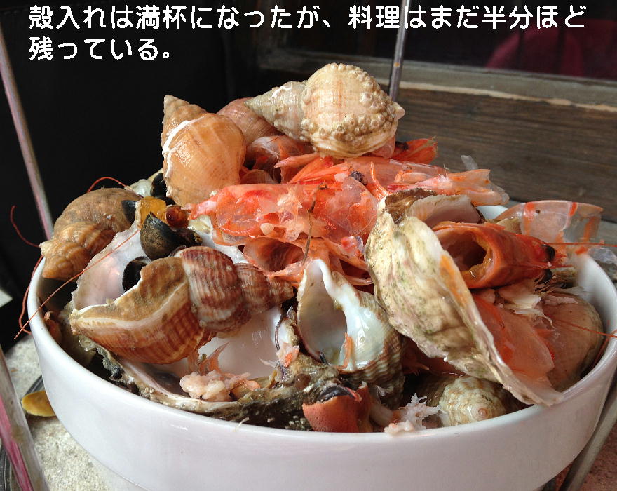 と言うのを注文したら、大きな丼のような器が貝だらけ。貝、エビ、カニのオンパレード。私は貝は好物なのでい