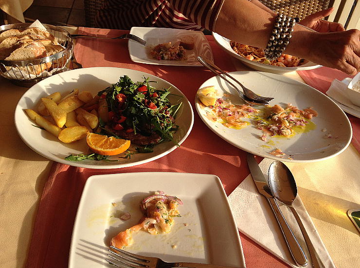 をとる。パスタ、フィレ肉のスライス等々を食べる。