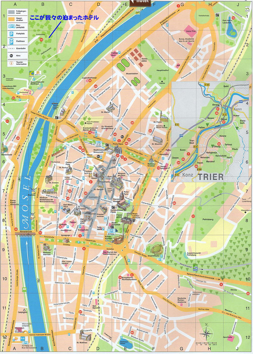 街の北のはずれのようで、ここからトリアの街は南方へ広がっている。皇帝広場、宮殿、ローマ遺蹟