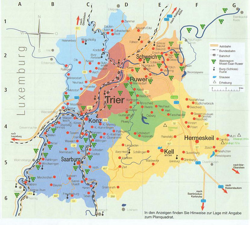 なモーゼルワインの一大生産地である。近隣の都市としては、約95キロ北東にコブレンツ、約40キロ
