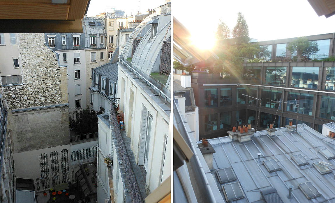 隣のベランダからは、下に通りを歩く人々の姿が見えるし、目の前(西?)にモンマルトルのサクレクール寺院