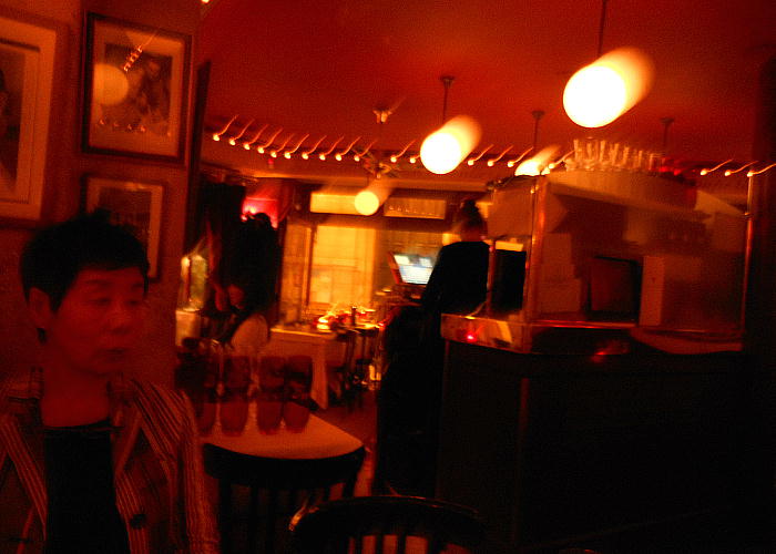 通りの角にはビストロやレストランが幾つも並んで居る。その内の一軒、ヒゲのウェイターのおじさんがいるビ