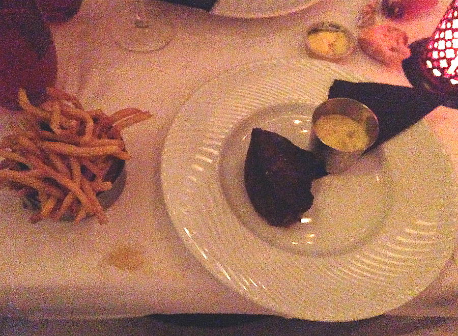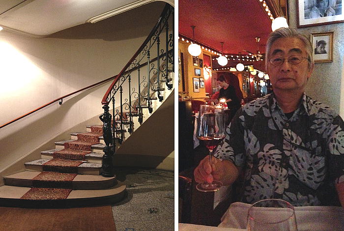 ストロに入って、ワイン、ステーキを食す。部屋から3分ほどのところだ。2度目のパリ。前回は毎日ホテルを