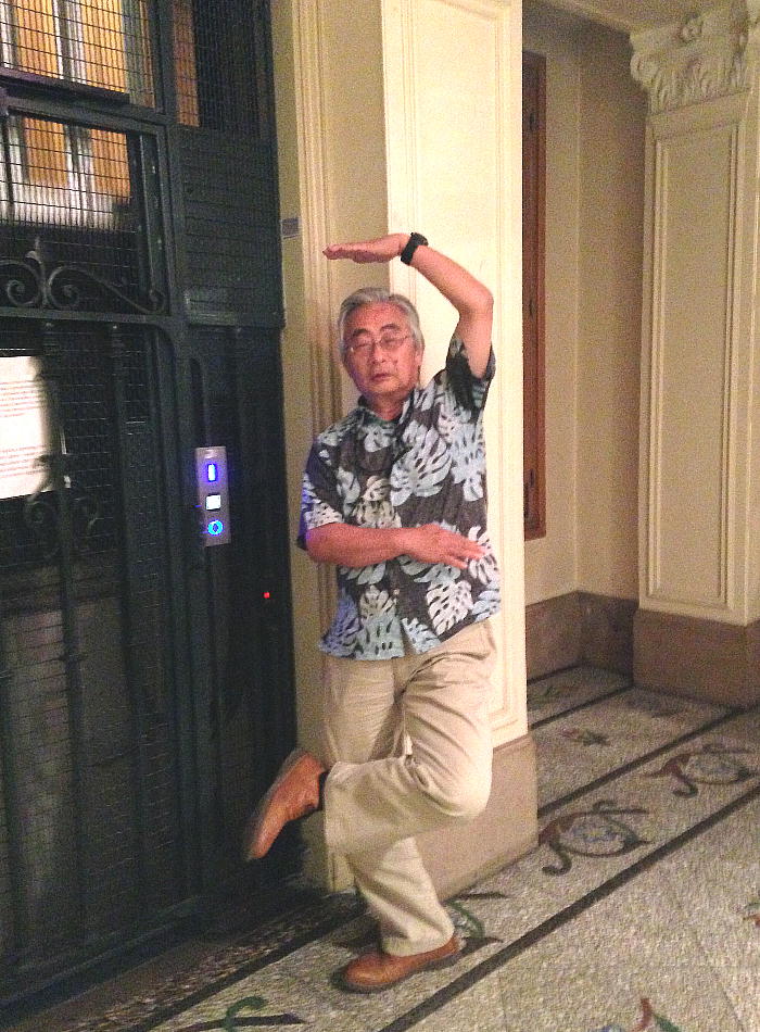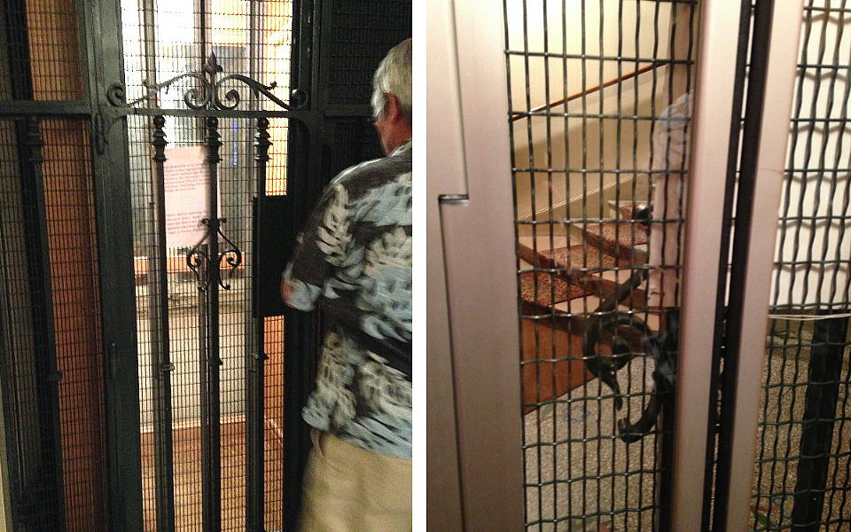 上右が我々の部屋のドア。エレベーター最上階(9階)がオーナーの家。母屋と別室でエレバーターを使う。