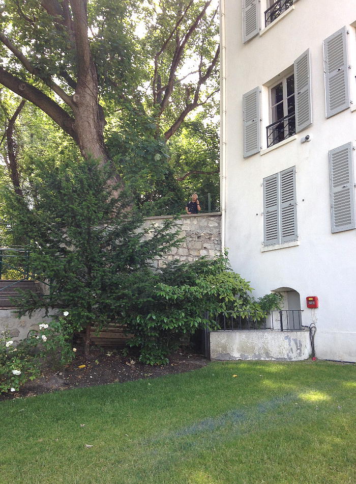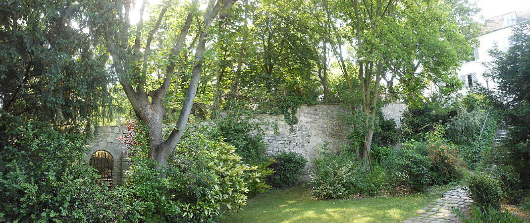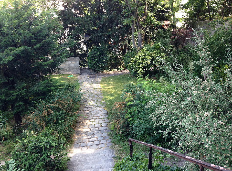 えられたサン・ヴァンサンの庭はパリ市の環境保護地域に指定された庭園。道を下って行くと、アニエス・リ
