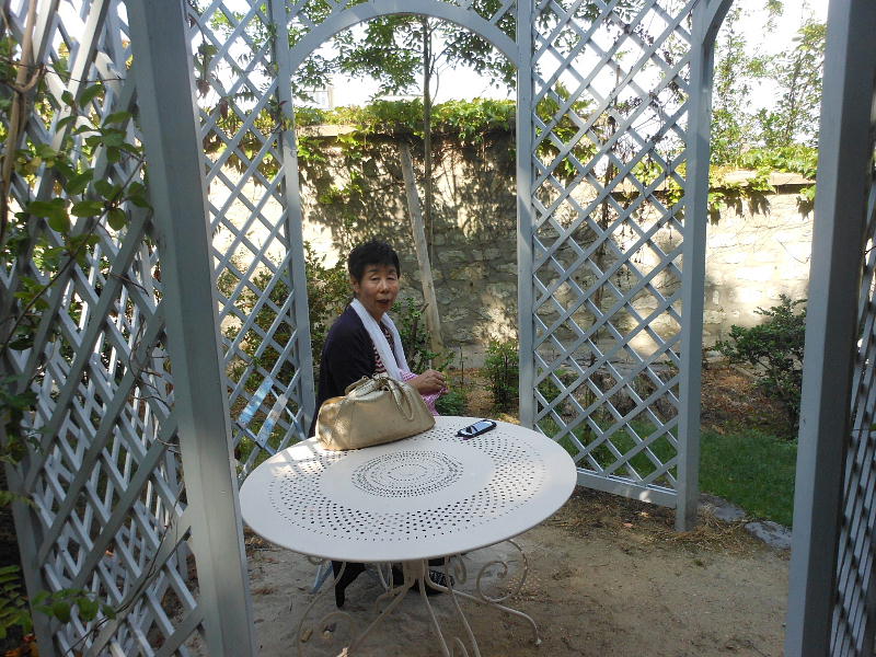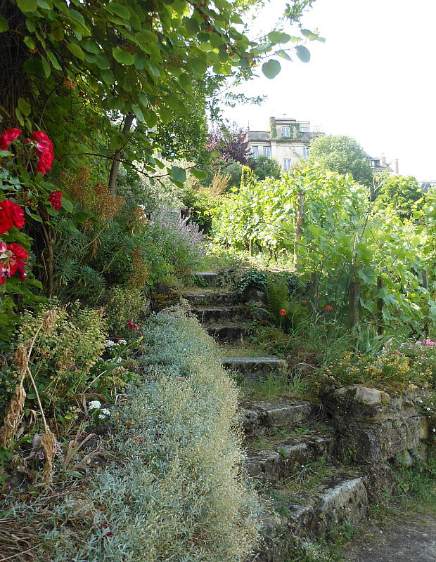 テラス、そして有名なモンマルトルのブドウ畑の上にせり出す傾斜した庭に出ます。ここには29品種、1,742株