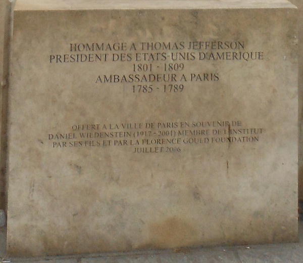 ジェファーソンは1785年から1789年まで駐フランス公使を務めていた。パリ滞在中はシャンゼリゼ通りにある家屋