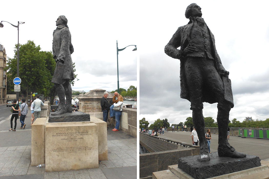 セーヌ河畔に立つ、第3代アメリカ合衆国大統領(1801年 - 1809年)「トーマス・ジェファーソンの銅像」。