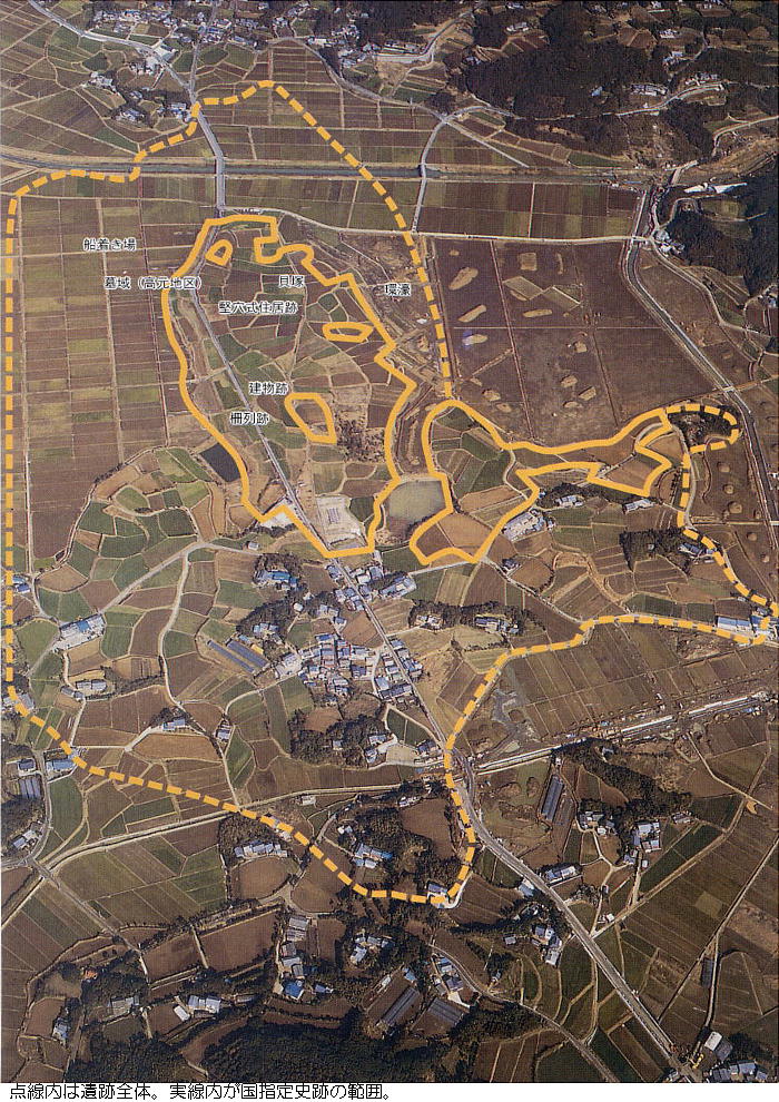 弥生時代の特別史跡としては、静岡県の登呂遺跡、佐賀県の吉野ヶ里遺跡とここだけである。