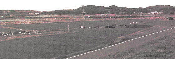 発掘後の遺跡は、現在すべて埋め戻されている。環濠も船着き場跡も土の下である。資料館の前から見た平野にかっての弥