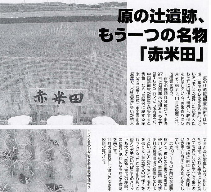 上右が、原の辻展示館の前に耕作された「赤米」の田圃である。