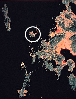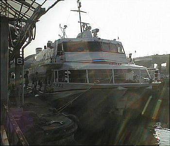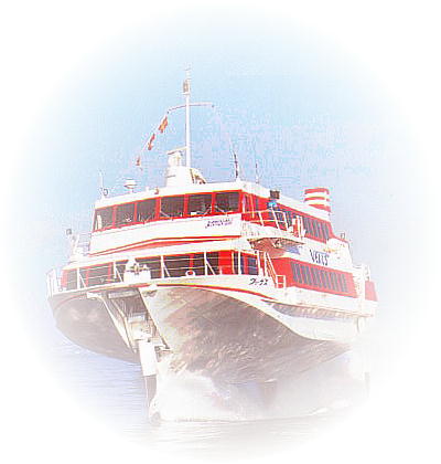 絡船である。これは早い。巡航速度(43ノット)になると船体が浮き上がり、飛び魚のようにして進んでいく。ここから
