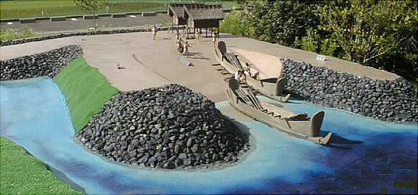 ◎新規製作の推定復元模型(1/2サイズの船・船着場、等身大の王・王妃・戦士など)