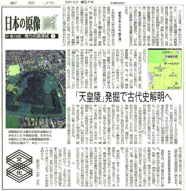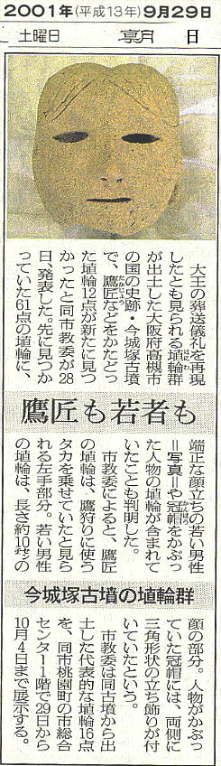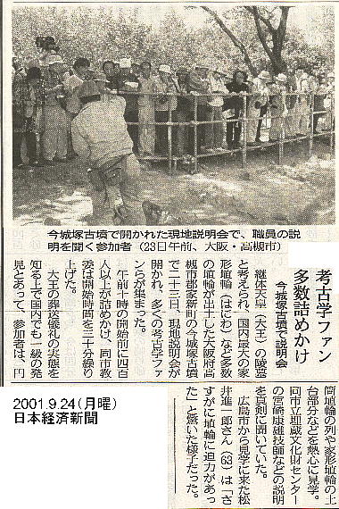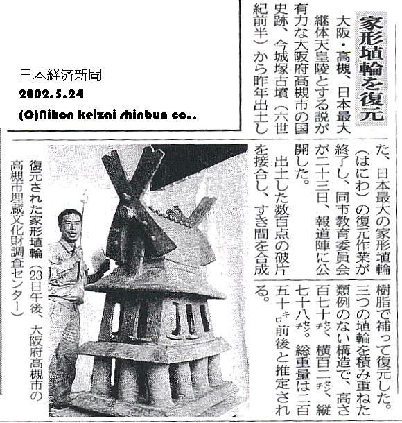2001年09月20日、大阪府高槻市の今城塚(いましろづか)古墳(国史跡、全長約190メートル)から、推定で高さ