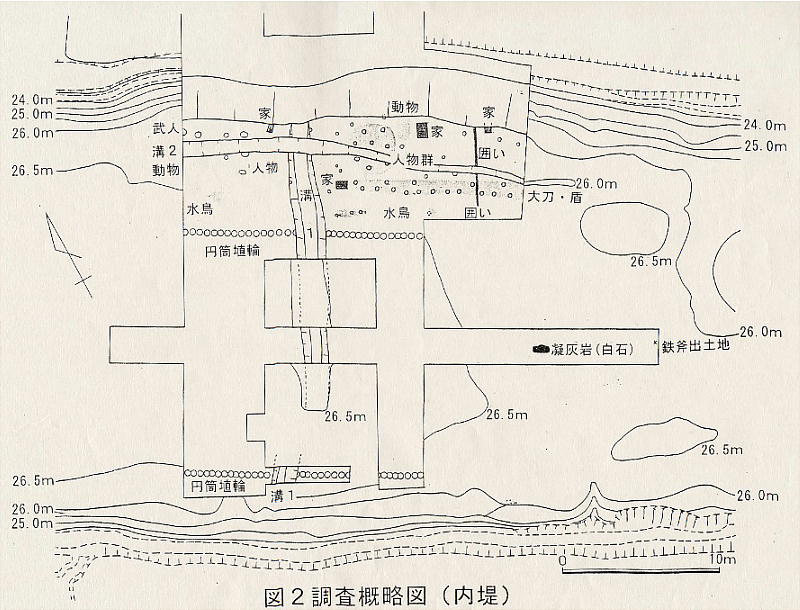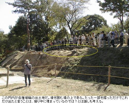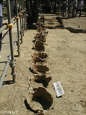 約60点)があり、外側の円筒埴輪列よりさらに外側に、約5メートル張り出して造成した部分(約126平方メ