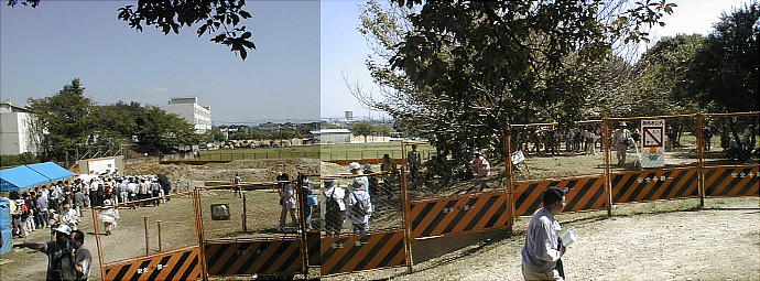 行列がぐるりと外堀を取り囲み、発掘現場を横目で見ながら反対方向へ行列は進んでいく。またUターンして戻っ