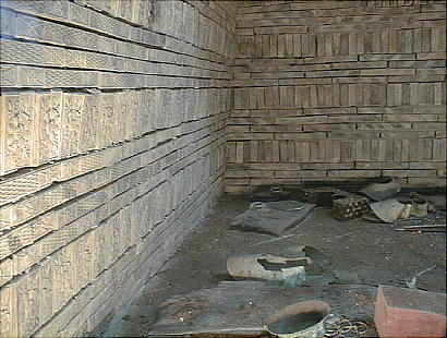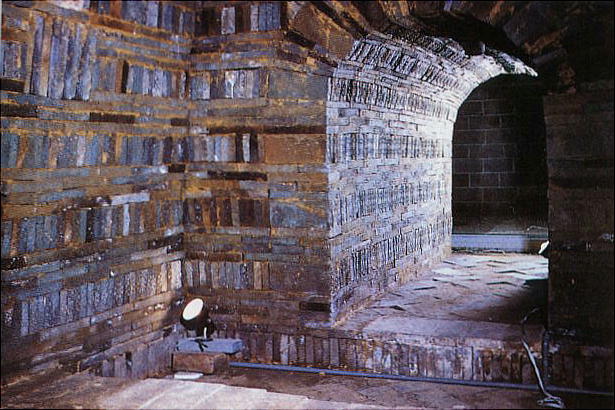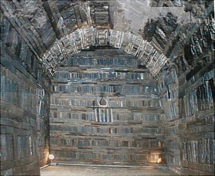 墓室は磚(せん)を積み上げて作ってあり、アーチ型の天井である。ここに、槙の木でできた王と王妃の柩が安置されていた。