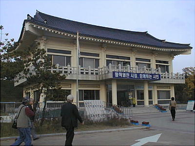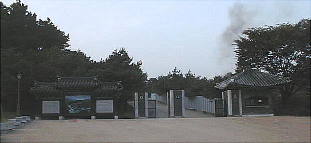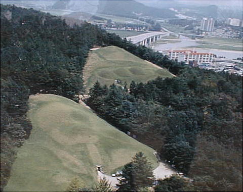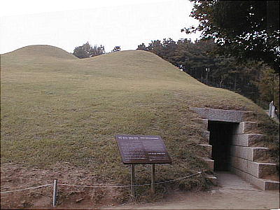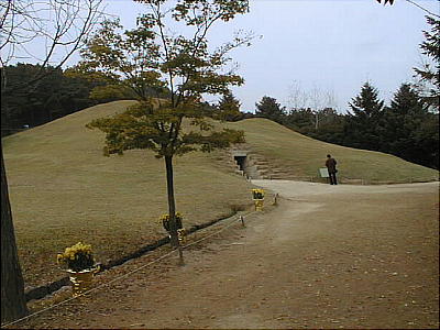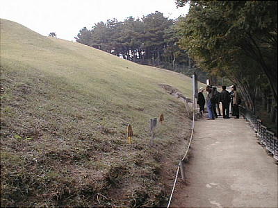 今は静かな大学都市になっている。武寧王陵はその市街地を望む山の上にある。墳墓そのものは、韓国のいたる所に残る土饅