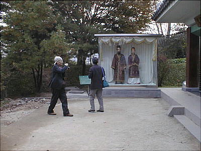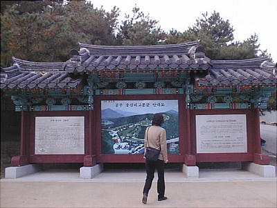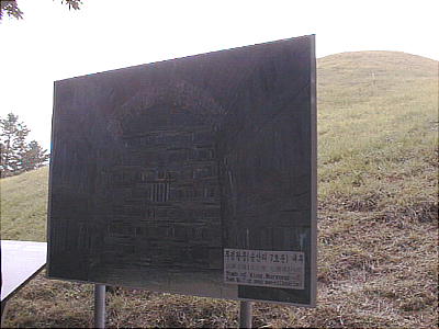 しかるべき手順を踏んで申し込めば、王陵の中に入ってガラスの壁を通して見ることもできるそうだが、宋山里古墳群の前