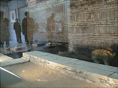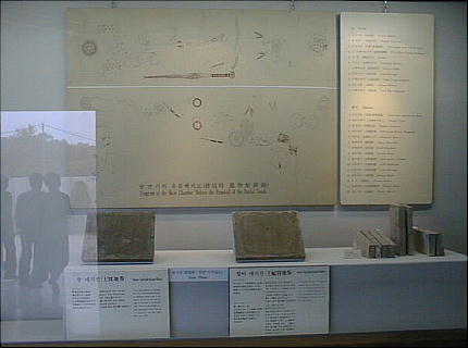 以下が、陵墓の内部を復元展示した「武寧王陵資料館」である。墓の内部が発掘当時のまま再現してある。廻りの壁には出土