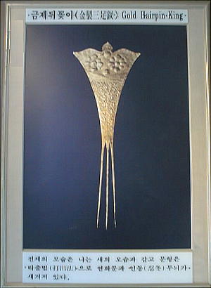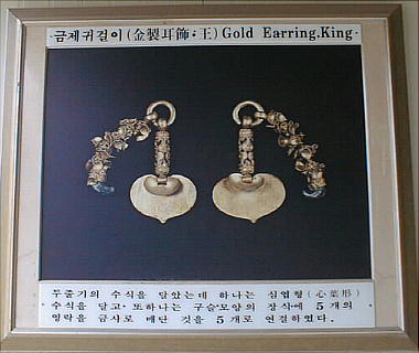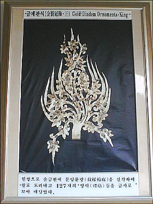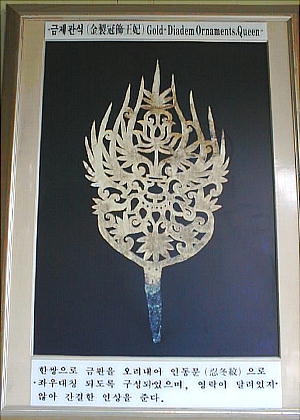 地祇(地神)から土地を買ったと刻まれた買地券である。また炎を形どった王と王妃の金製冠飾や金製耳飾り、金の首飾りな