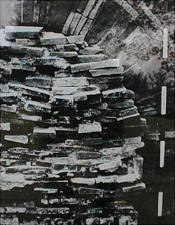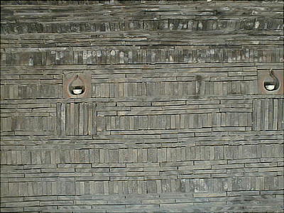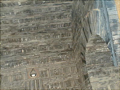 壁面の磚を積む方法は、長手積みと小口積みを交互に行うもので、長手積みは4枚の磚を横にして積み重ね、小口積みは、1