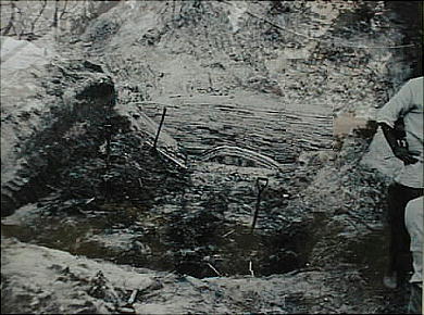 資料館から墳墓までの間の側道にも、発掘時や出土品の写真が並べられている。
