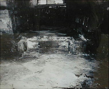 下から天井まで垂直で、東西壁は壁面の上部を少しずつ内側に傾けてトンネル形天井を構成した。